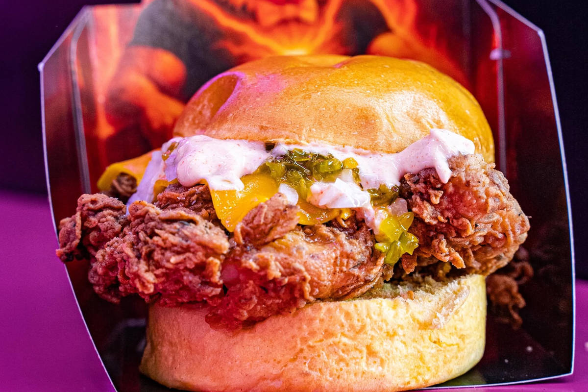 - Chicken Kali (from Chicken Boss): chicken breast marinated for 24 hours with a special breading, red cheddar, KALI sauce from Titos, pickle relish and brunoise onion.